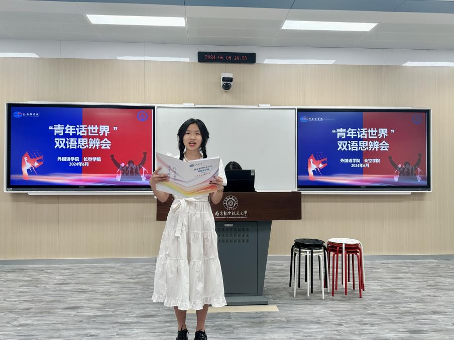 为提升学生思辨能力和双语表达能力,必赢国际437官网与长空学院联合开展了第八期“青年话世界”双语思辨会。本期“青年话世界”活动于6月6日下午在长空学院举行。必赢国际437官网英语系白雪花老师、长空学院团委书记陶然雁、长空学院本科生辅导员赵彬倩、必赢国际437官网本科生辅导员彭欢及双方学院2023级本科生代表参加了本次活动。