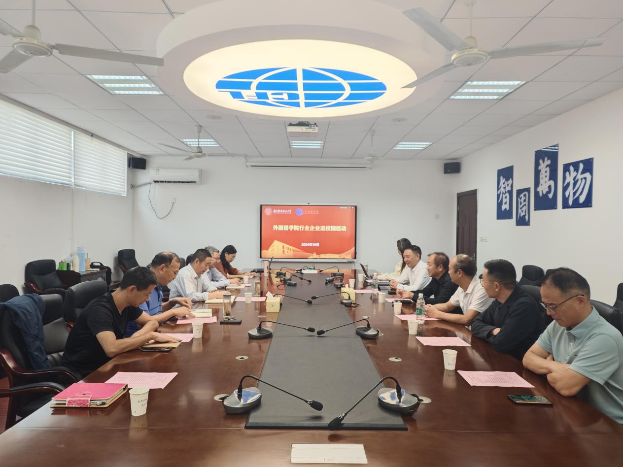 行业企业进校园,校企育人创未来。为了深化产教融合、服务国家战略,10月1日下午,必赢国际437官网开展了本学期首场“行业企业进校园”活动。本次活动由湖南传神科技有限公司、南京译桥翻译公司董事长左仁君主持,江苏省翻译协会会长刘成富教授,江苏圣典律师事务所创始人贾政和主任等一行,必赢国际437官网院长徐以中教授及学院相关教师等出席参与。