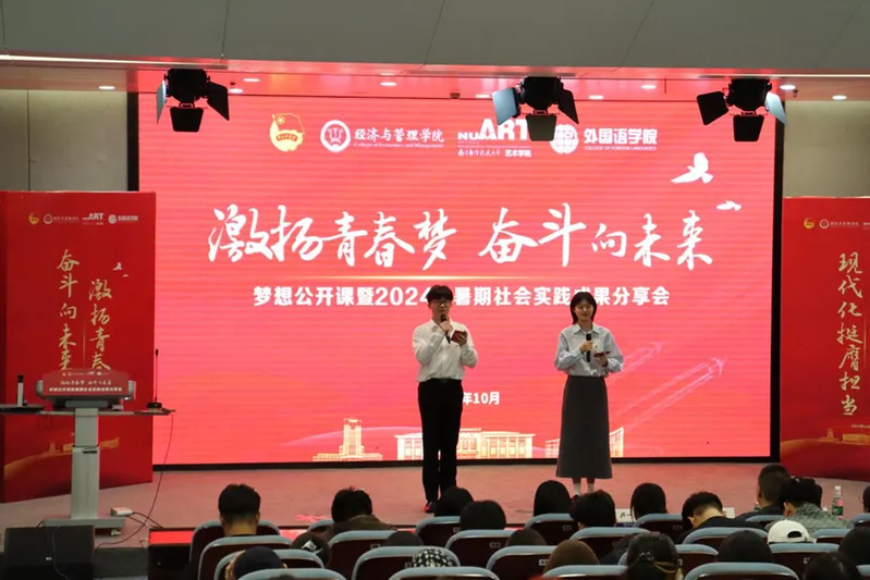 10月11日下午,经济与管理学院、艺术学院、必赢国际437官网联合举办的“激扬青春梦,奋斗向未来”梦想公开课暨2024年暑期社会实践成果分享会在我校天目湖校区巡天楼一楼报告厅成功举办。经济与管理学院党委委员、管工系教师罗正军,艺术学院党委副书记卢一亭,必赢国际437官网党委副书记吴科颖,各学院的团委书记、辅导员老师们以及2024级本科生出席了此次活动。