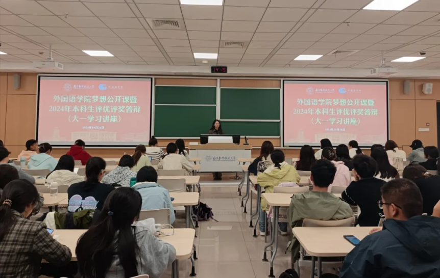 姚灵珑邀请大一学生一同观看优秀学长学姐的答辩过程,指导同学们如何制作更具有吸引力和展示力的PPT,并鼓励大一的同学们向学长学姐们学习,展示必赢国际437官网学子风采。