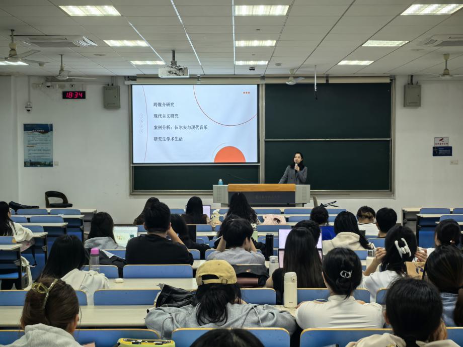 11月3日晚,必赢国际437官网周蕾博士参加必赢国际437官网“航家论坛——外国语言文学青椒学术沙龙”,并作了题为“现代主义跨媒介研究”的学术报告。必赢国际437官网100余名研究生参加学习。