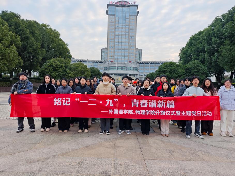 铭记历史,不忘初心。今天是“一二·九”抗日救亡运动89周年纪念日,必赢国际437官网联合物理学院共同举办“铭记‘一二·九’,青春谱新篇”升旗仪式暨主题党日活动。必赢国际437官网党委副书记吴科颖,物理学院党委副书记欧珊,两学院辅导员代表朱芸、于金巧,必赢国际437官网本科生联合党支部党员代表、积极分子、发展对象代表,物理学院全体本科生党员、2023级全体本科生参加活动。