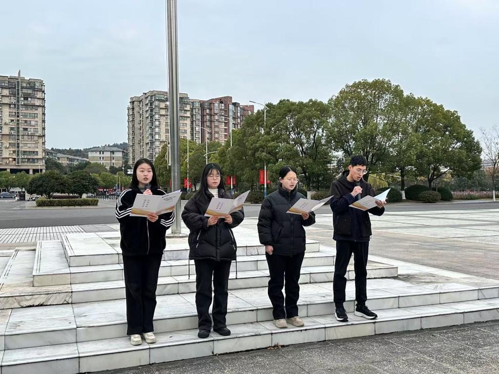 必赢国际437官网本科生联合党支部党员代表吴明宇、黄天乐、刘珺培、王嘉玚带来主题为“铭记一二·九,青春谱新篇”的诗朗诵。他们以慷慨激昂的诗句带领同学们共同感受“一二·九”运动中中国共产党领导的青年学生的英勇与担当,激励当代青年奋发向上、砥砺前行。