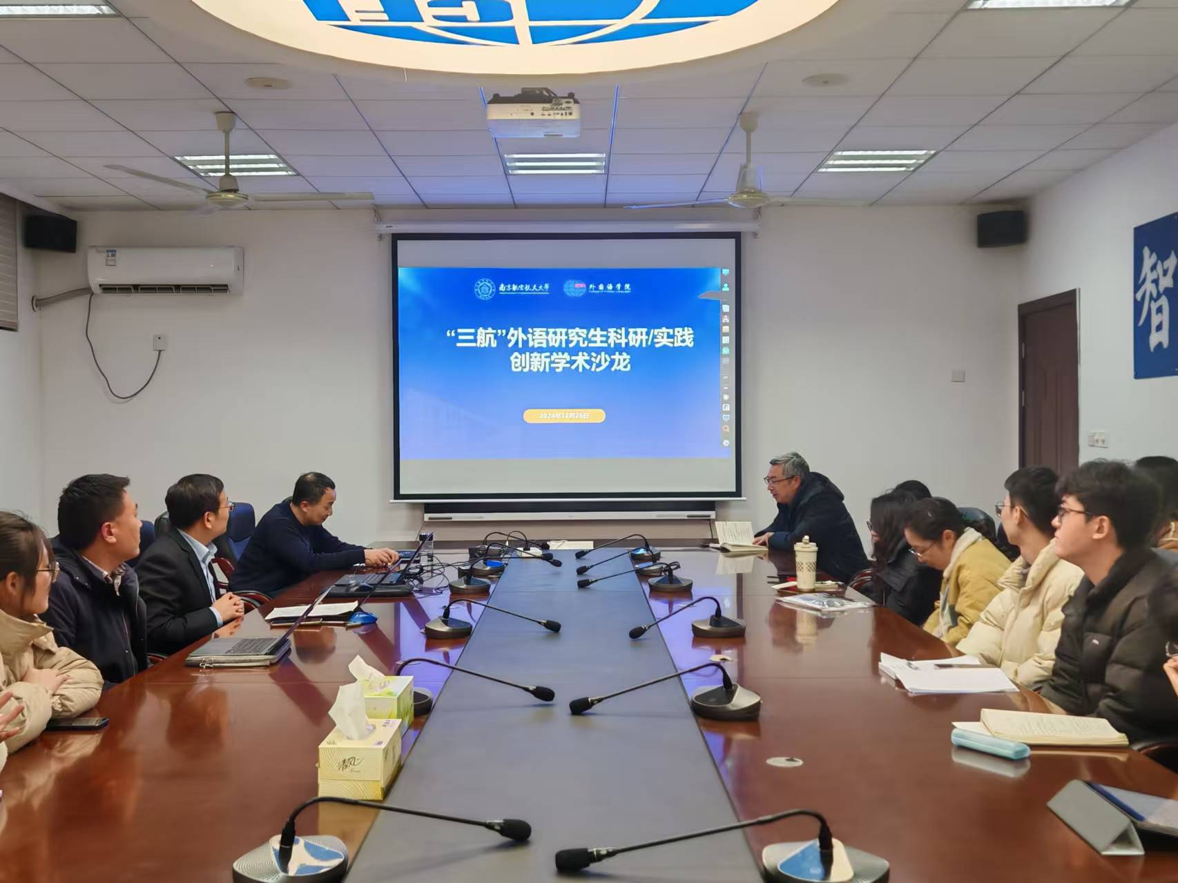 活动伊始,副院长姜礼福首先介绍了本次学术沙龙策划的背景,指出航空航天民航(三航)特色是南航外语精品文科建设的重要方向,认为“三航”特色既应体现在MTI翻译实践中,也应融入到外国语言文学研究中,本次沙龙是学院持续努力实现外语学科和“三航”深度融合的尝试。