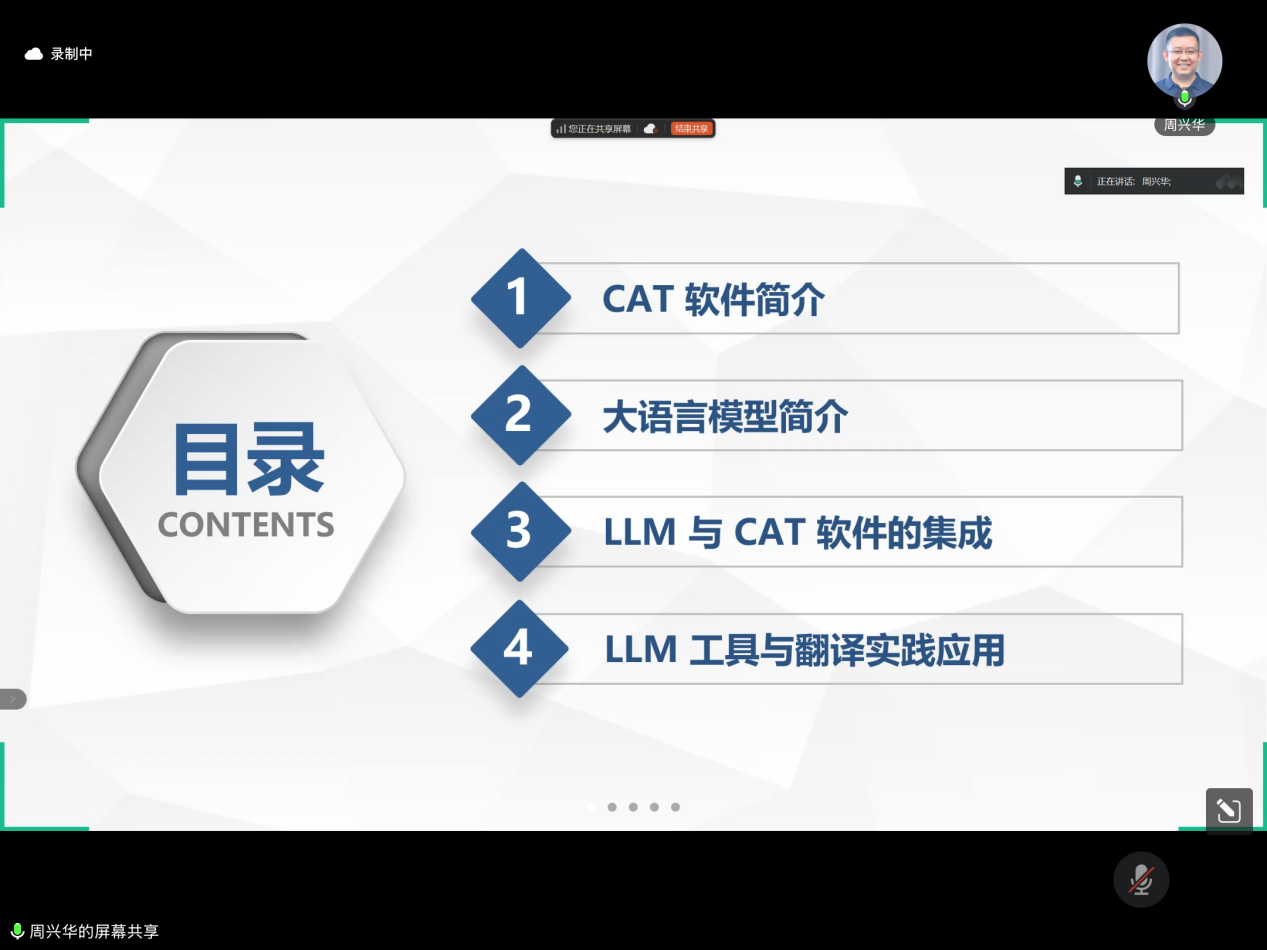 在讲座中,周兴华系统探讨了大语言模型(LLM)与计算机辅助翻译(CAT)技术在翻译实践中的应用,内容共分为CAT软件简介、大语言模型简介、LLM与CAT软件的集成、LLM工具与翻译实践应用四个部分。周兴华分享了CAT软件的发展历程和主要功能,阐述了大语言模型的概念、特点及其在翻译领域的应用前景。此外,周兴华通过实际操作Kimi和豆包等软件,演示多个案例,指导同学们如何利用软件的力量翻译、分析并整理文本等。
