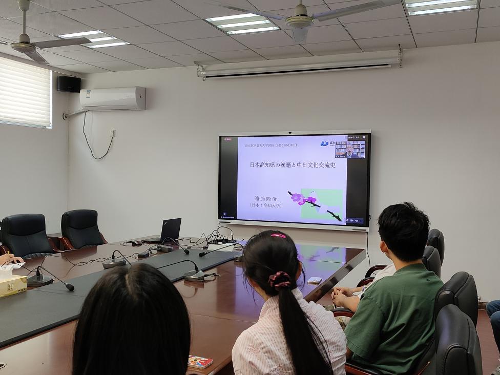 活动第一环节,学院邀请了日本高知大学副校长遠藤隆俊教授做了题为“日本高知県の漢籍と中日文化交流の歴史”的专题讲座,旨在增强学生对中国典籍日译的了解,更好地讲好中国故事。远藤教授详细展示了《四书集注》《孟子》等古籍图片,介绍了中国古典文献在东亚的流传路径、版本特点及其在日本汉学发展中的重要意义。讲座史料详实、内容丰富,开阔了同学们的眼界。