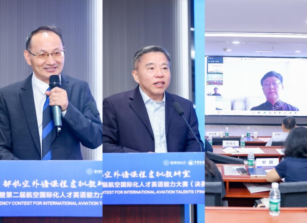 刘宇雷、张艳玲共同为教育部航空外语课程虚拟教研室新成员单位授牌。