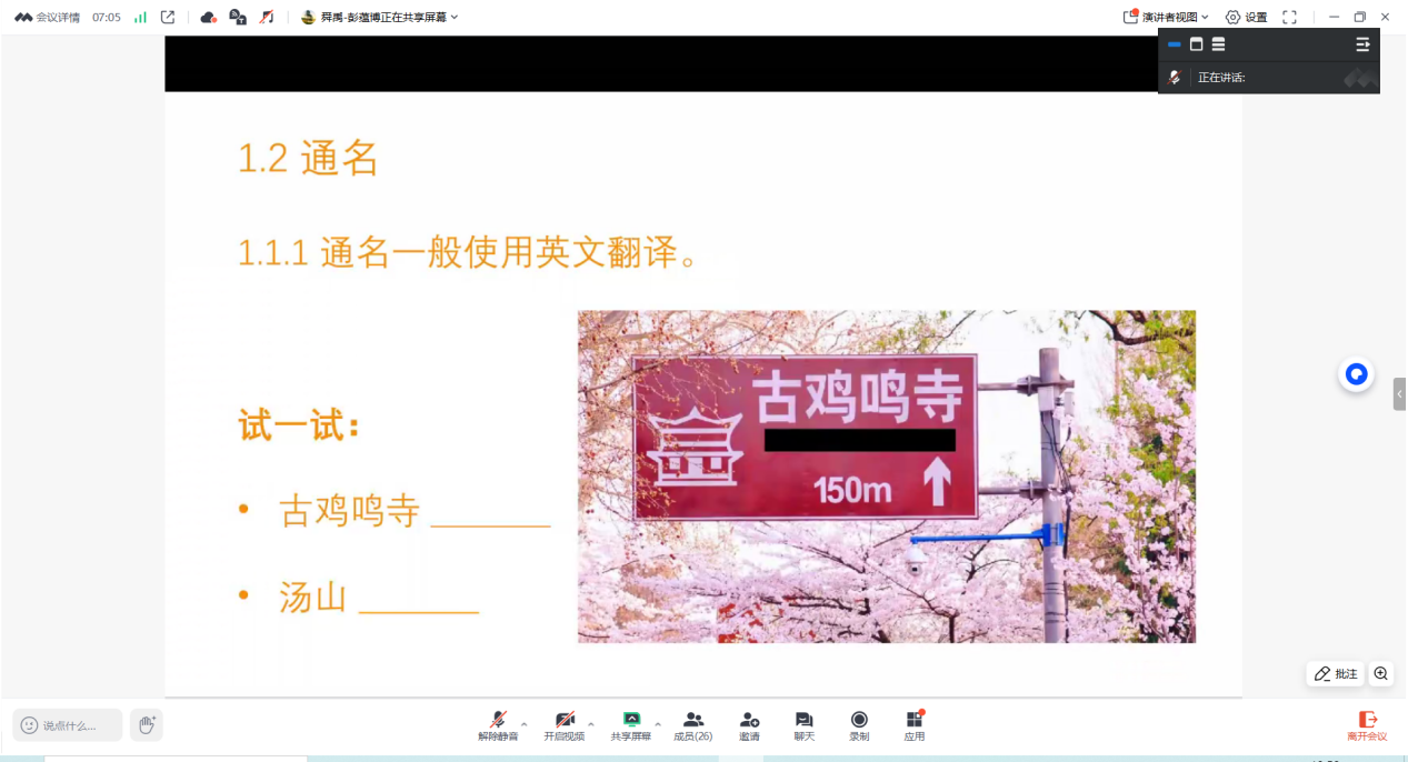最后,彭蕴博再次强调了公示语翻译的重要性,并鼓励同学们多参与翻译实践,提升自己的语言能力并丰富自我实践。