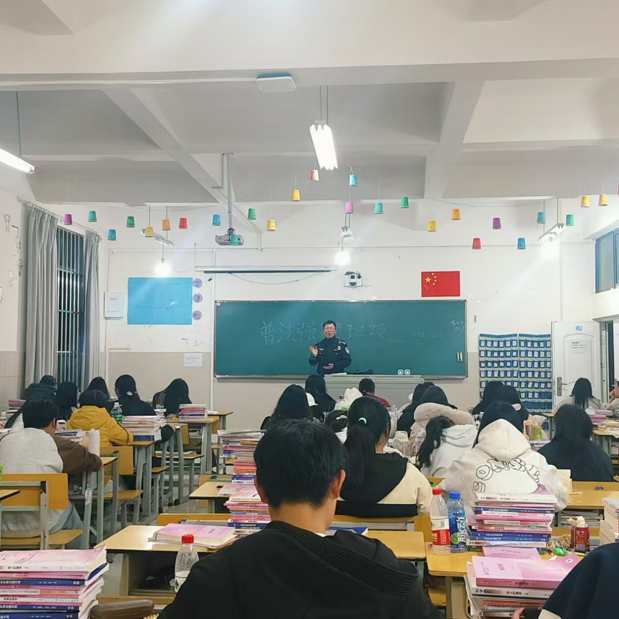 为提高在校大学生安全防范意识和法制观念,积极营造和谐稳定的校园环境,2024年12月10日昆阳派出所驻校民警丁五通和李瑞嵩警官到校开展以智防诈骗为主题的安全及教育宣讲活动。