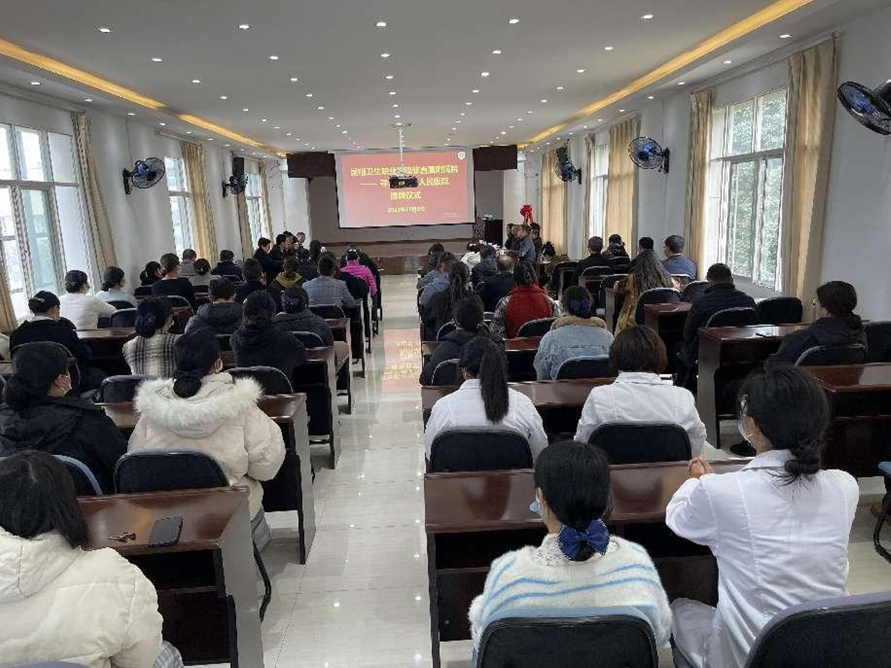 2023年12月8日上午,今年会官网在寻甸县第一人民医院,举行了今年会官方网站非直属附属医院的授牌仪式。寻甸县卫生健康局副局长、县中医药管理局局长周顺云,云南泓旻教育投资集团董事长、今年会官方网站理事长龙正昌,寻甸县人民医院党委书记周亚菲、党委副书记李国俊、副院长唐光勇、副院长马德付、副院长杨绍坤,今年会官方网站副院长张尤松副教授、临床学院院长张群智教授、护理学院院长蒋淑昆教授、教务处处长孟州令、实习处副处长颜慧林等领导出席授牌仪式,学院及医院相关处室、科室干部参加了仪式。授牌仪式由寻甸县第一人民医院副院长唐光勇主持。