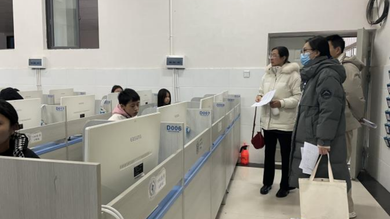 经巡考工作组巡查发现部分考场未写板书、未组织单人单座;个别监考教师未佩戴工作证、部分学生在机考时对电脑操作不熟练等问题。巡考工作组发现问题后指导监考教师现场解决。