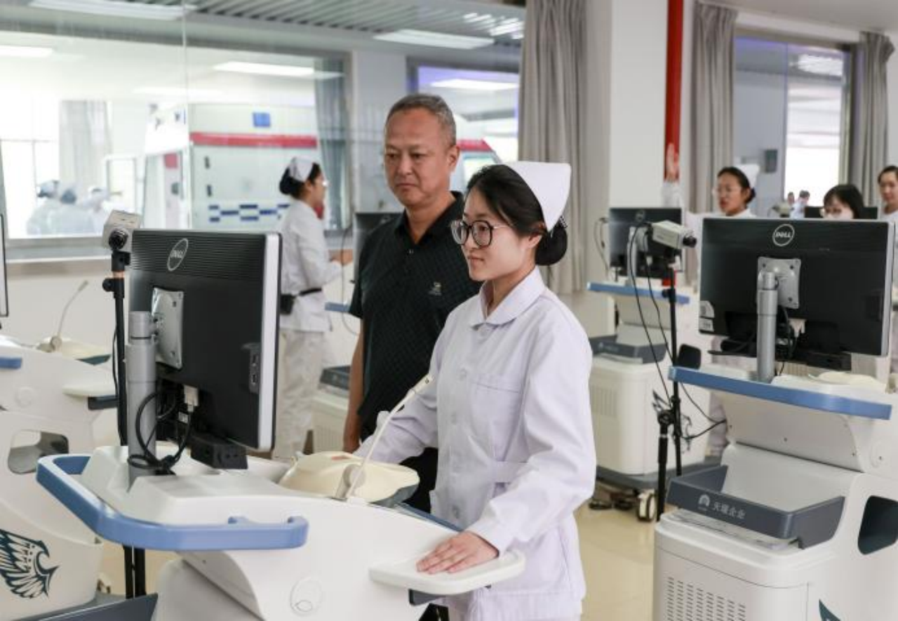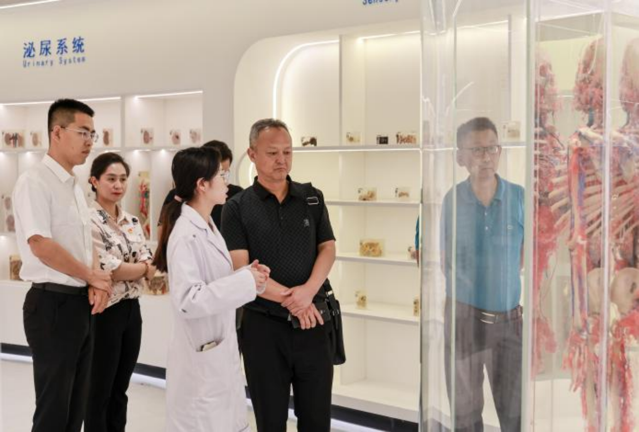 张路同志等人首先陪同戴宏一行实地参观了学院众创中医馆、基础医学院、护理学院各实验实训室。