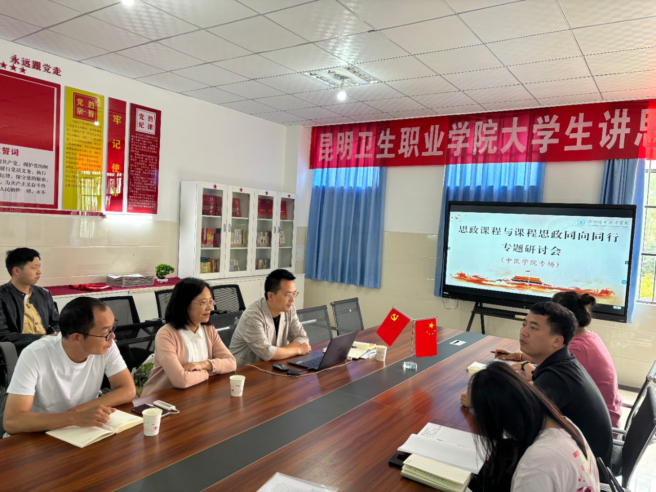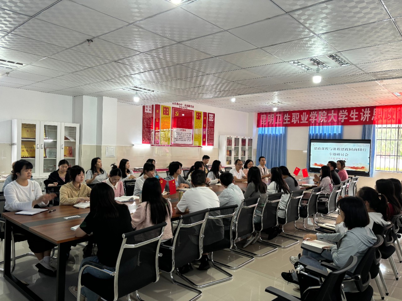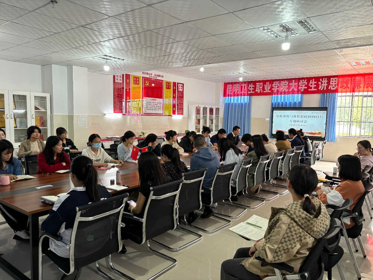 为深入学习贯彻习近平新时代中国特色社会主义思想,落实《高等学校课程思政建设指导纲要》文件精神,进一步深化思政课程与课程思政建设,6月18日至26日,马克思主义学院联合护理学院、口腔学院、中医学院、临床学院领导班子、一线骨干教师召开“课程思政与思政课程协同育人”专题研讨会,共同探讨如何实现课程思政与思政课程的有机融合,提高育人效果。