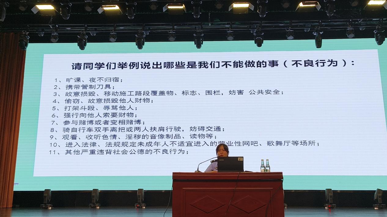 李悦溪警官通过列举各种生动的案例向同学们讲述青少年走上违法犯罪道路的原因。她强调,大多青少年踏上这条不归路大都是对法律的无知,这更加让我们意识到普法宣传的重要性。