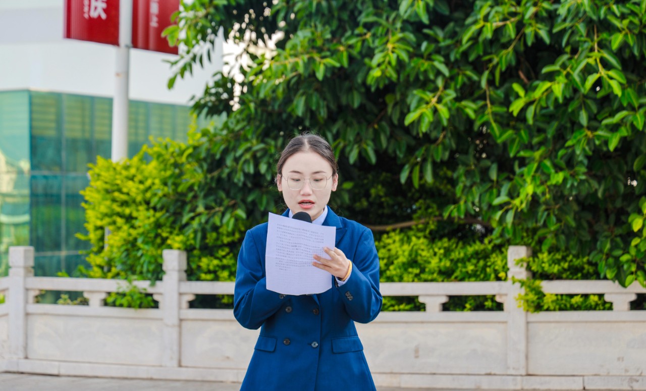 就业处杨阳老师作国旗下的演讲,她表示,作为一名医学院校的教师,将牢记习近平总书记的嘱托,做一名平凡但有温度的教育工作者,引导学生将个人的人生目标实现与国家需要和人民健康紧密结合,为云南省医疗卫生事业的发展贡献自己的青春和力量。