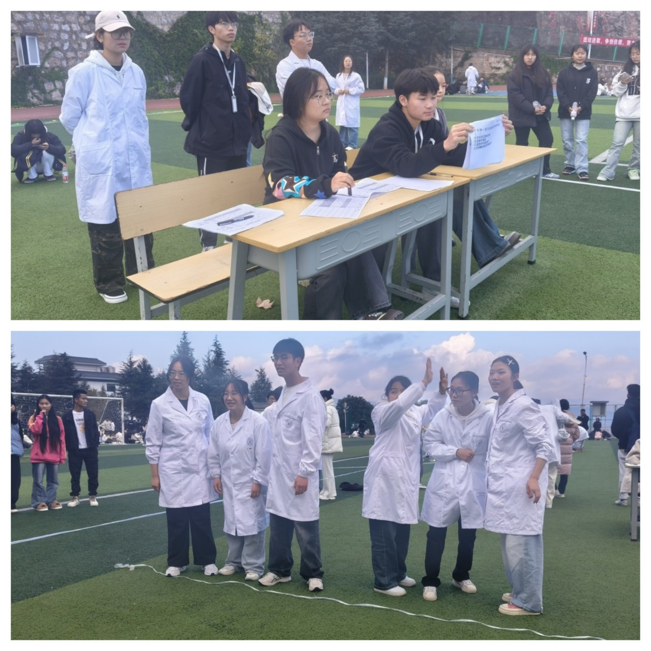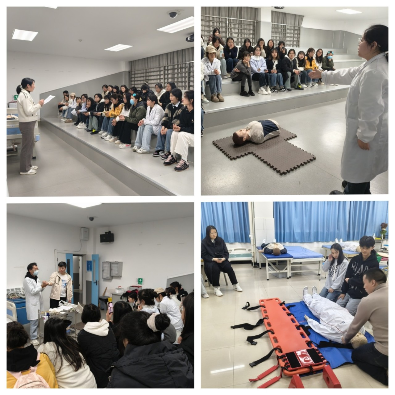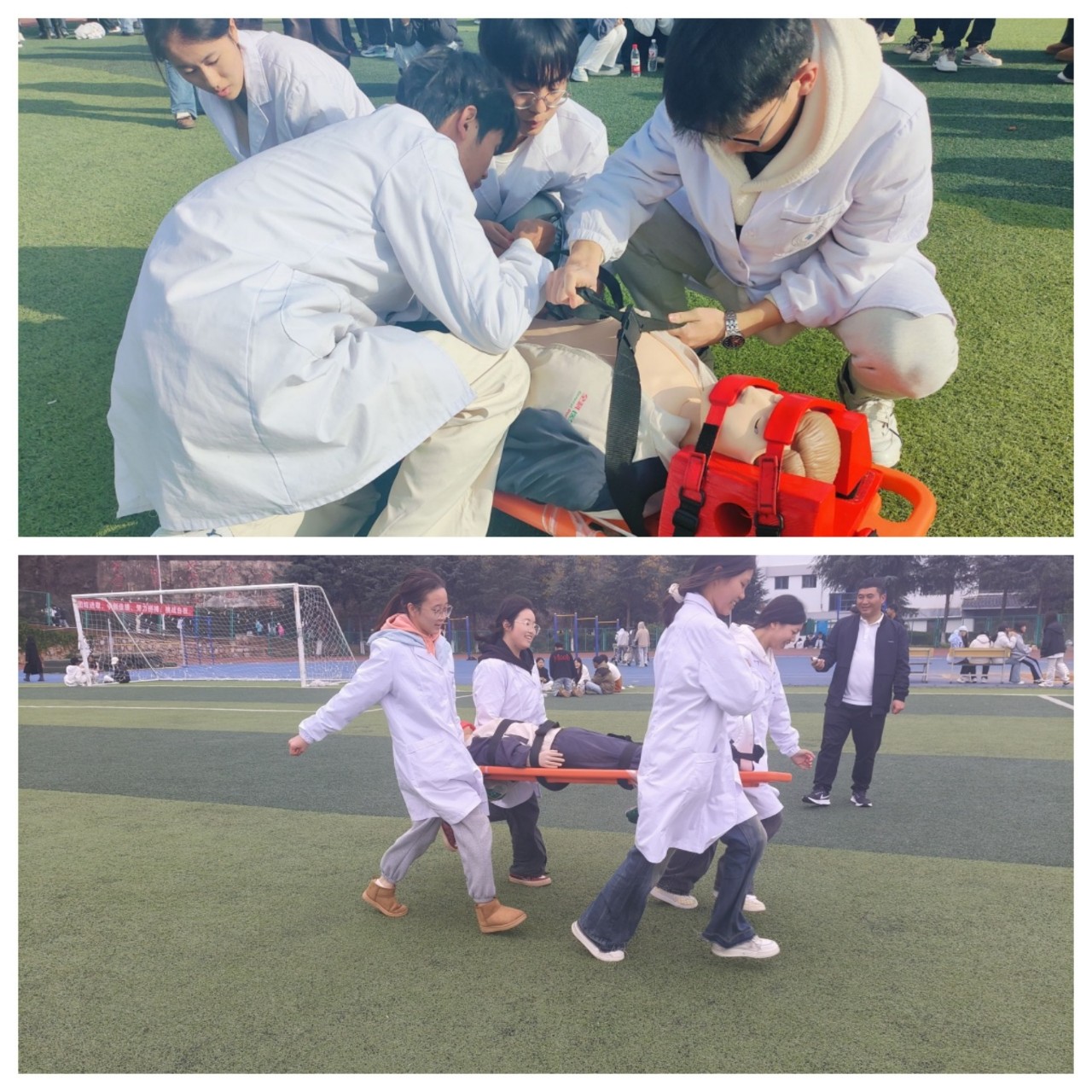 本次急救教育大闯关共设三关,参赛小组须依次通过障碍到达终点。由于比赛内容包括特定的急救技能操作,教务处在运动会前两周安排了两轮共四次的急救技能培训,分别由护理和临床两个学院承担。在培训期间,教师积极鼓励学生们利用课余时间主动预约实验室自行练习。在培训过程中,教师们积极讨论并准备培训材料,及时解答学生们提出的问题,学生们也踊跃参与培训活动。