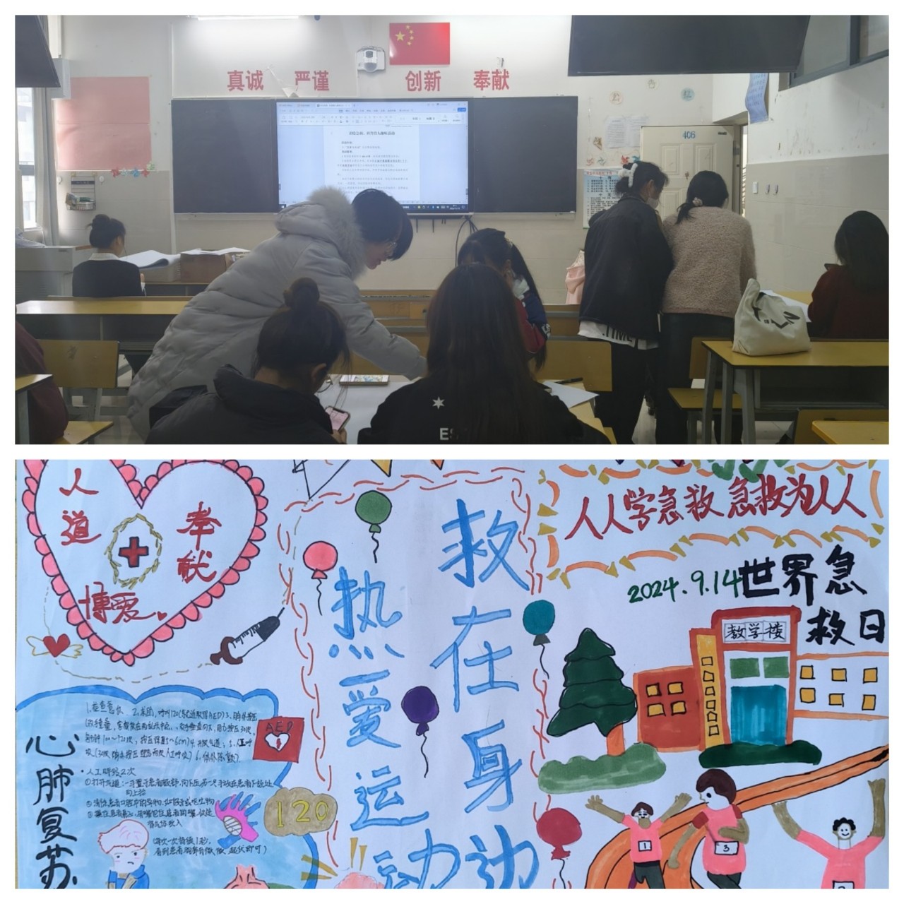 图5 “彩绘急救,科普育人”学生风采及作品展示