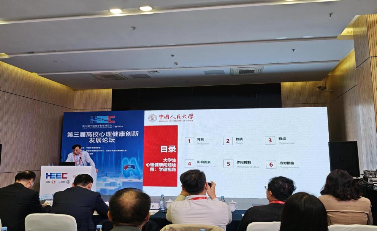 西安交通大学大学生心理健康教育与咨询中心主任姚斌教授以“评论与激励:新形势下高校心理健康教育提质增效核动力”为主题开展报告,他提出高校心理健康教育提质增效不仅要抓关键人物,更要做好单位考核评价、营造积极氛围。