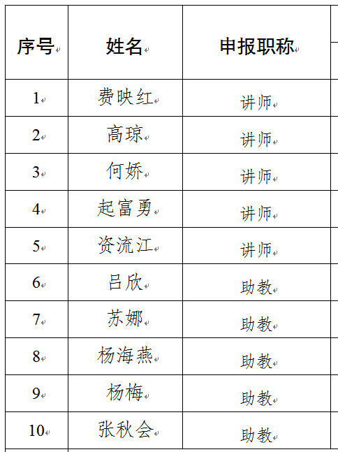 根据《今年会官方网站关于开展2024年度职称申报评审工作的通知》昆卫院〔2024〕60号要求,经辅导员申请,大学生工作部推荐小组对申报人的资格条件和申报材料进行审核,秉承公平、公正、公开的原则,经会议讨论研究,无记名表决,同意推荐费映红等5人申报讲师职称,同意推荐吕欣等5人申报助教职称,现将拟推荐名单进行公示。