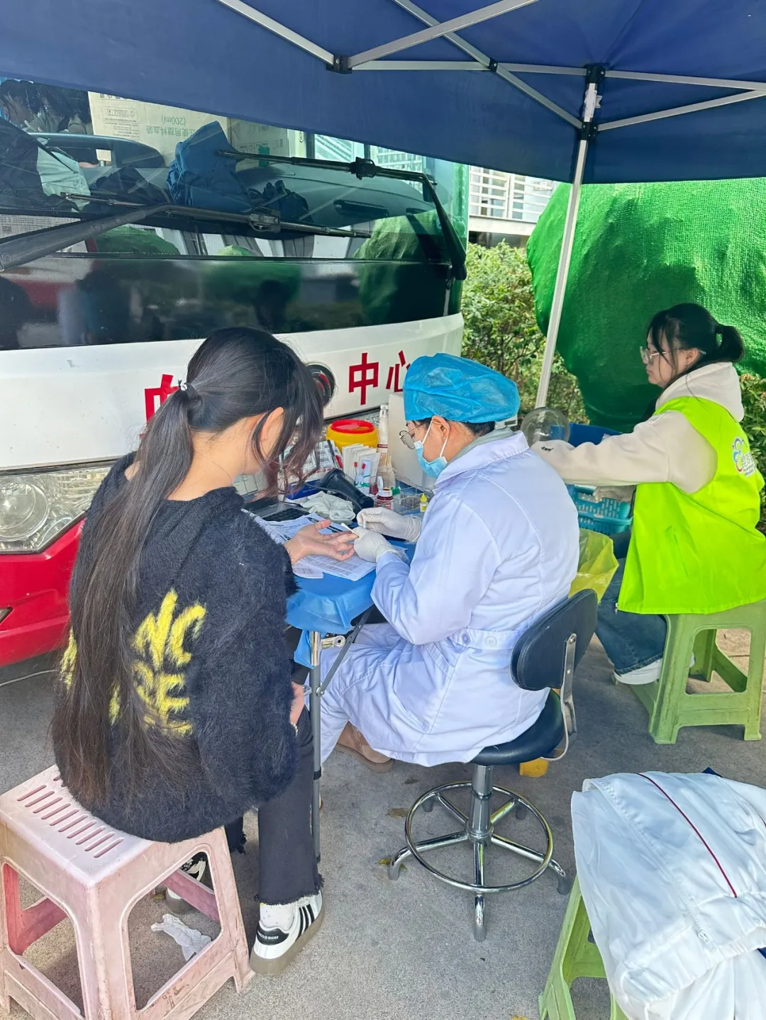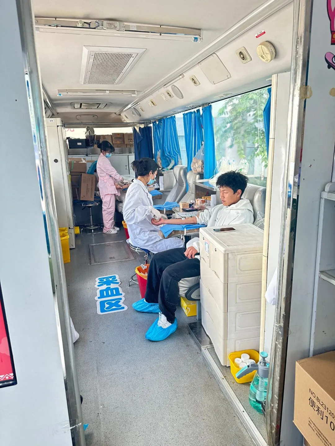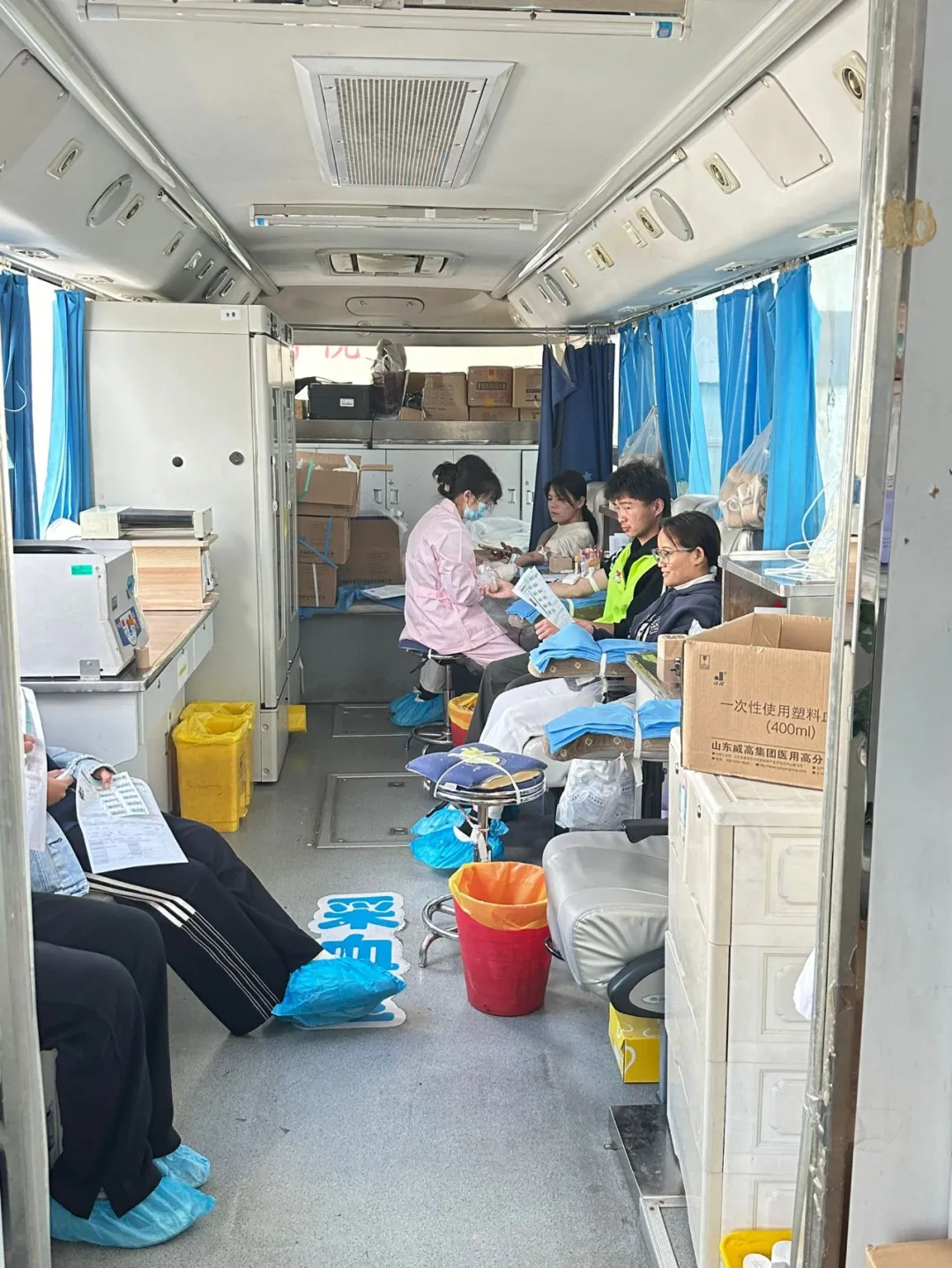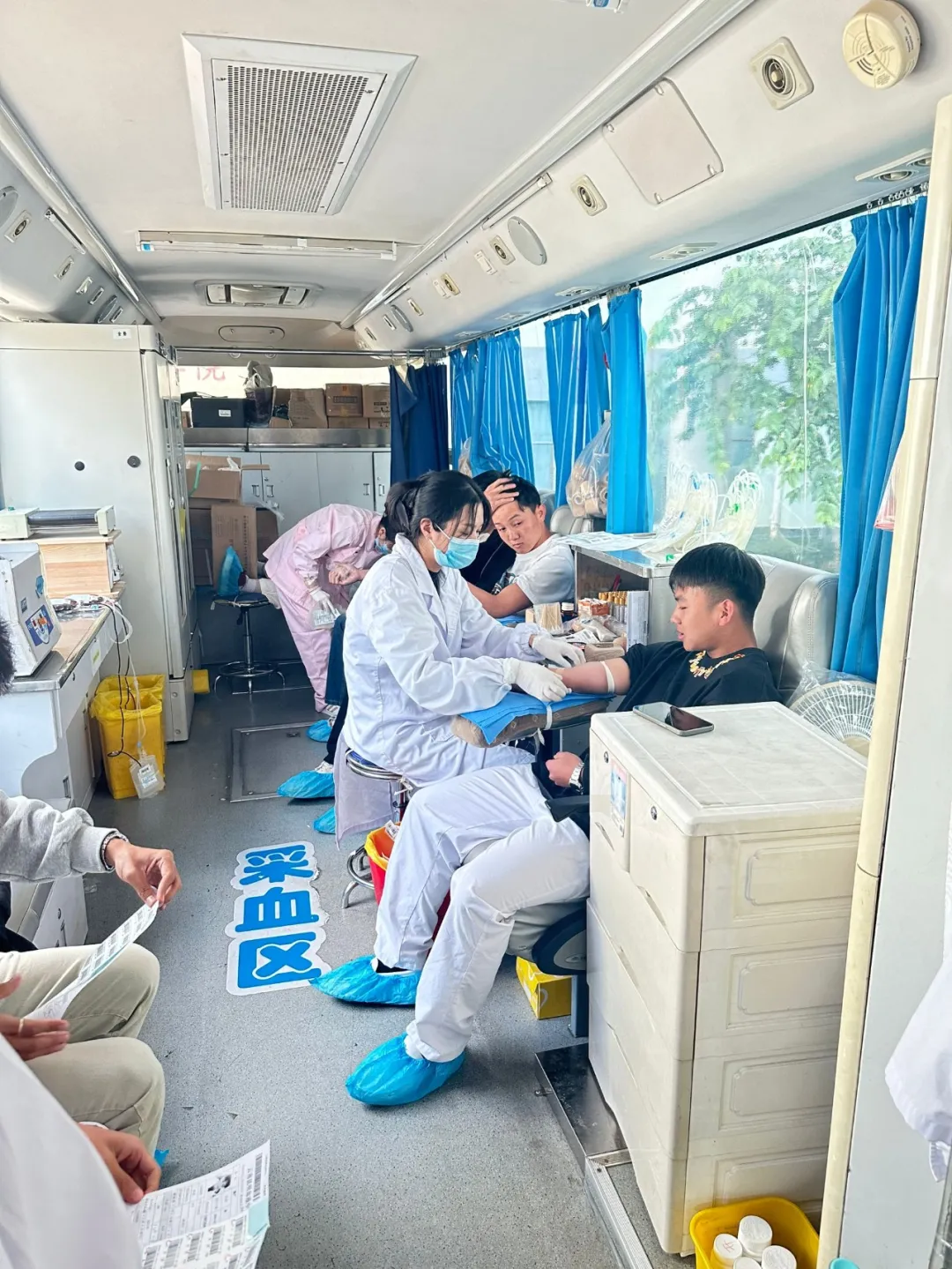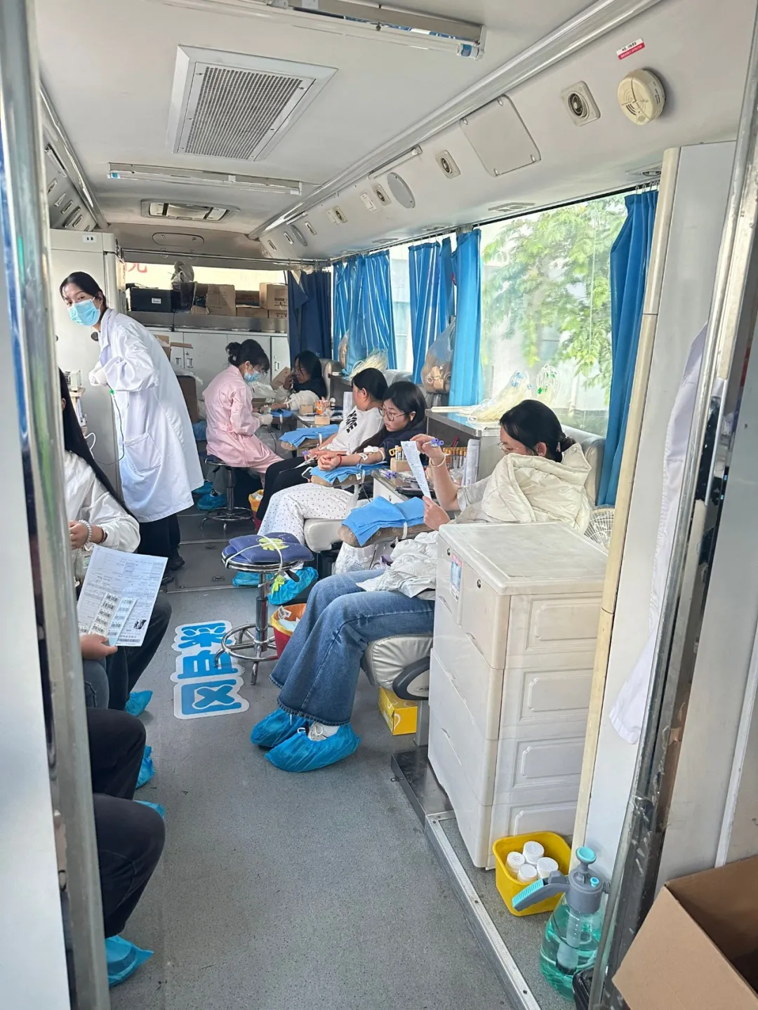 活动期间,校园内爱心涌动,秩序井然。采血车一早就位,献血师生们满怀热忱,依次排队完成登记、体检、初筛等环节,现场气氛热烈而温馨。学院的志愿者们成为了活动中一道亮丽的风景线,他们忙碌地穿梭在人群中,耐心解答疑问,协助填写表格,为献血者提供贴心的引导和帮助,并细心叮嘱献血后的注意事项,用实际行动践行 “全心全意为师生服务” 的宗旨。