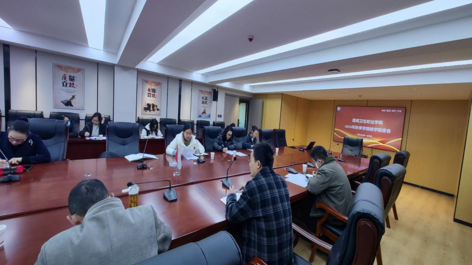 为了解本学期各项教学工作的推进情况及存在问题,2024年12月4日,教务处组织各二级学院院长、教学副院长、教学办主任及各专业带头人、培养对象于明德会堂第一会议室召开“2024年秋季学期教学联席会”会议由学院副院长李玉晶主持。