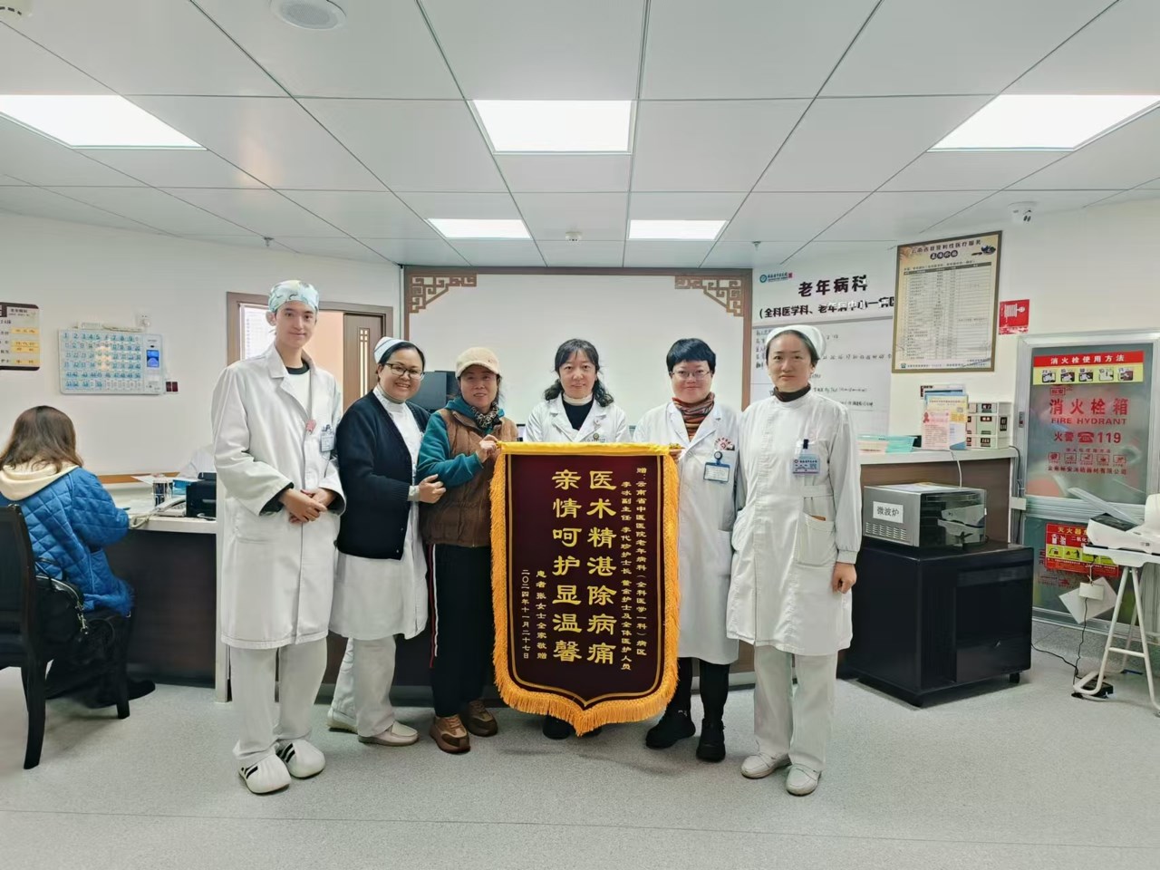 2024年12月2日,云南省中医医院老年病全科的病房里涌动着一股暖流。当今年会官方网站2020级五年制护理18班董金同学像往常一样忙碌在岗位上,一位已经康复的患者带着一面鲜红的锦旗,步履蹒跚却满脸笑意地走进了科室。