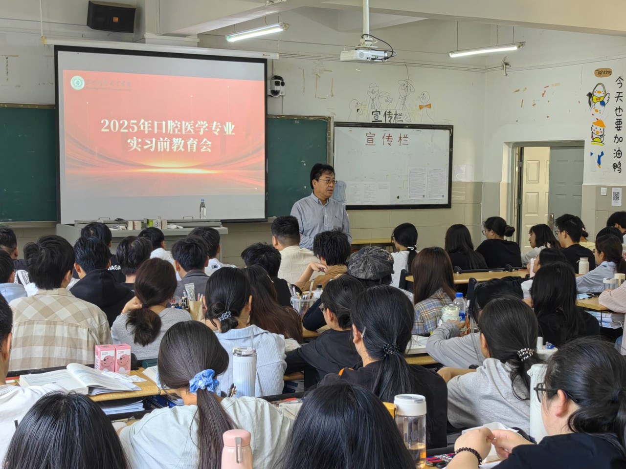 进班宣讲环节在张尤松副院长的带领下,由临床实践教学管理科老师组织开展,他们分别深入到口腔医学专业不同班级,根据专业特色,进行有针对性的指导。着重强调了实习日常管理工作规范,以及医疗安全、宿舍安全、交通安全、网络安全等方面的安全问题。学生们纷纷表示,此次教育培训内容丰富、实用性强,让他们对即将开始的实习生活充满信心。
