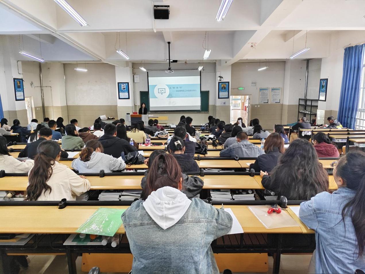 2025年10月14日,学院邀请昆明医科大学人文与管理学院副院长陈影副教授进校开展“辅导员的专业化发展与职业规划”讲座,围绕“辅导员专业化发展”开展培训,从破局、进阶、行动到日常管理,系统输出成长路径。培训开篇点明“专业化是唯一出路”,将其定位为应对挑战的“必然选择”、突破瓶颈的“核心引擎”、实现育人价值的“唯一路径”。