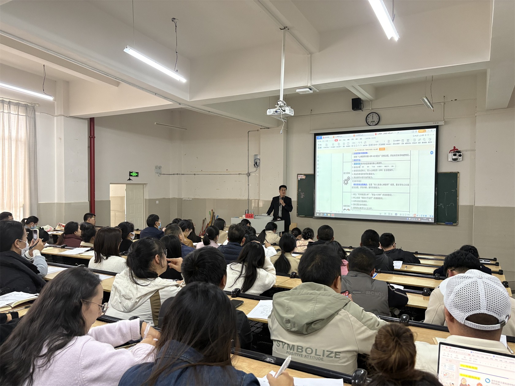 王教授首先通过真实教学案例展示、课堂设计与实施过程解析,呈现了人体解剖与组织胚胎学课程中《子宫内膜》教学节段,以典型病例为切入点,图文并茂生动阐释子宫内膜的结构、功能及其周期变化,其授课内容注重临床思维与健康教育相结合,体现“以学生为中心”的教学理念。其次,王教授以《心搏骤停与心肺复苏》教学设计为例,详细展示了从教学目标设定、重难点解析到教学流程实施的全过程。活动现场,教师们积极互动,成效显著。