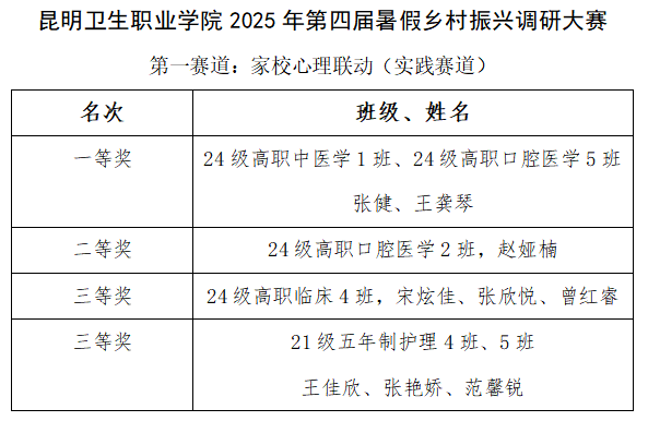 今年会官网大学生工作部成功举办第四届假期乡村振兴调研大赛,本次大赛同期设立“家校心理联动”(实践赛道)和“乡村产业相关调查”(调研赛道)双赛道,共收到来自护理、中医、口腔、临床等多个专业的优秀调研报告,近日获奖名单正式公布。大赛以“家校同心·健康同行”为主题,各组同学利用暑期深入云南省宣威、会泽、晋宁、宜良、元阳等地的农村、医院、产业园区,通过问卷、访谈、实地观察等方式,认真调查,展现了医学生扎根基层、服务社会的专业担当。