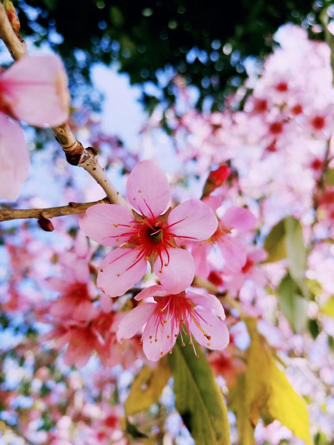 某日上课,正讲到“风暖熏开花万朵,醉人寰。似锦嫣红盈媚眼,幽香淡淡逗蜂巅”处,转头时,窗外一树粉嫩青红撞入眼帘,恰巧春风拂过,花颜仿似一瞬绽开,不觉回首,已是疲态顿消,笑容满面。