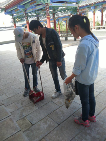 (图一:打扫小广场走廊)