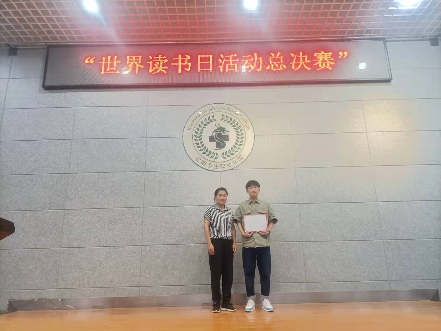图2 高丽老师给荣获一等奖同学颁奖合影 图3 赵冬梅老师给荣获二等奖同学颁奖合影