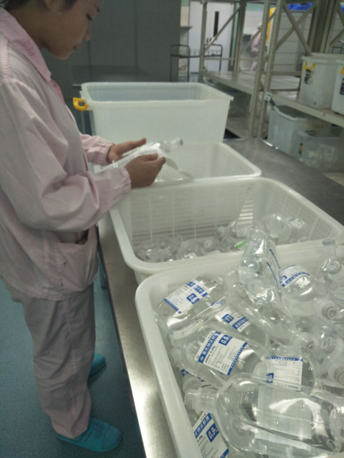 贴标签是我认为所有工作中最难的,不同的患者所需要糖、盐都是不同剂量的。每天各科室都有成千上百的标签需要贴,而且贴错一个老师需要重新将标签打出,是很麻烦的一件事。老师一直告诫我们,要仔细贴,无可避免的,我贴错了好几个,老师非常耐心地教我将标签重新打印。贴标签的时候细心是最重要的,因为不只药的剂量不同,批次也不同。