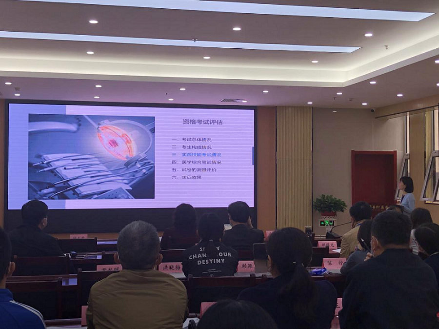 课题负责人赖颖真副教授做”口腔执业助理医师准入基本要求与考试评估研究“项目汇报,历时两年多的国家医学考试中心项目”口腔执业助理医师准入要求与考试评估“圆满结题。