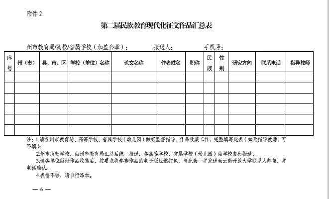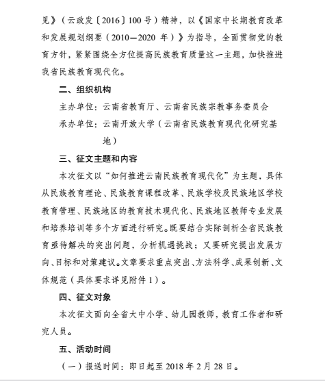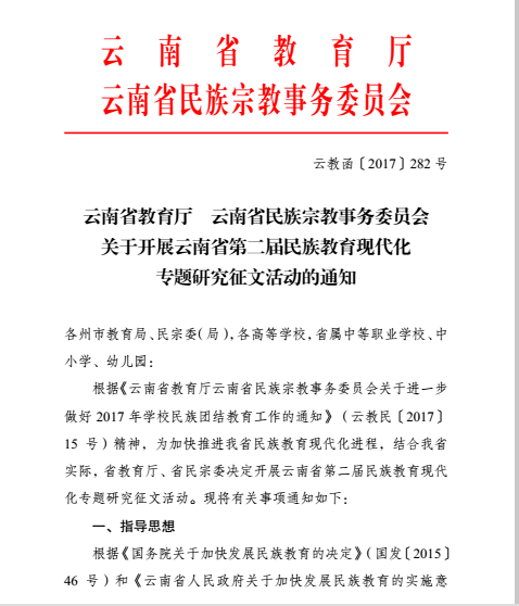 云南省教育厅 云南省民族宗教事务委员会关于开展云南省第二届民族教育现代化专题研究征文活动的通知
