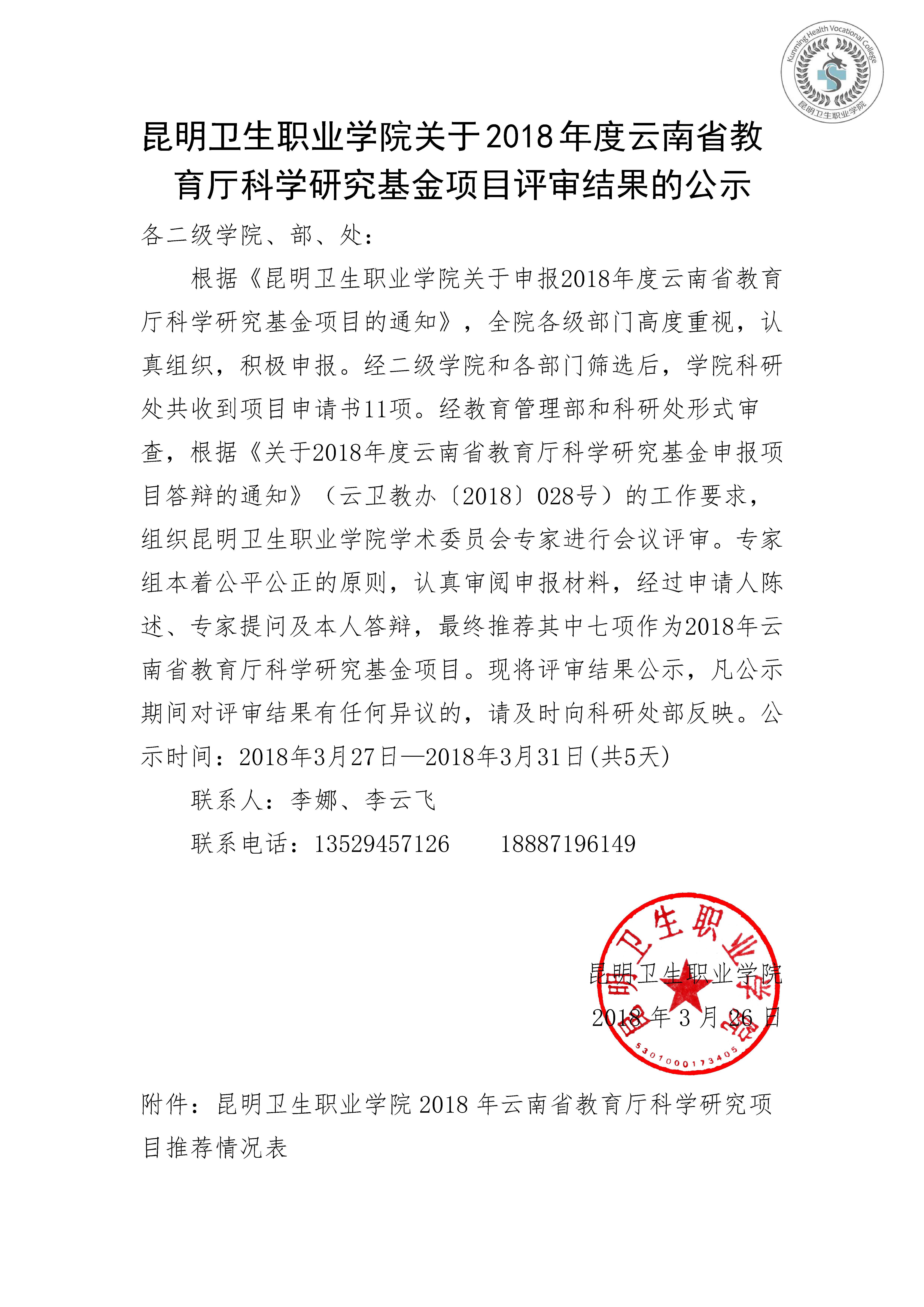 今年会官方网站关于2018年度云南省教 育厅科学研究基金项目评审结果的公示