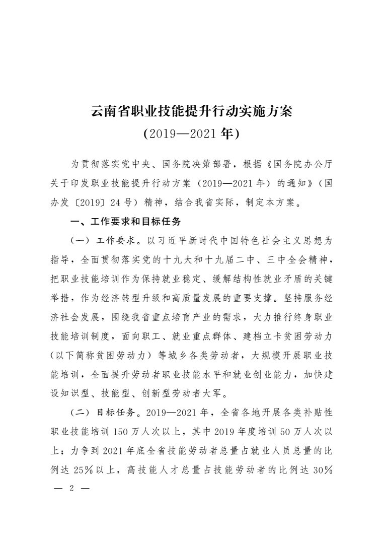 权威发布|云南省人民政府办公厅关于印发云南省职业技能提升行动实施方案(2019—2021年)的通知