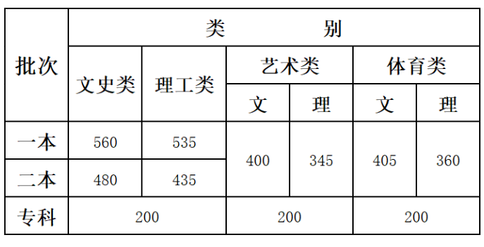云南省2019年普通高校招生录取最低控制分数线