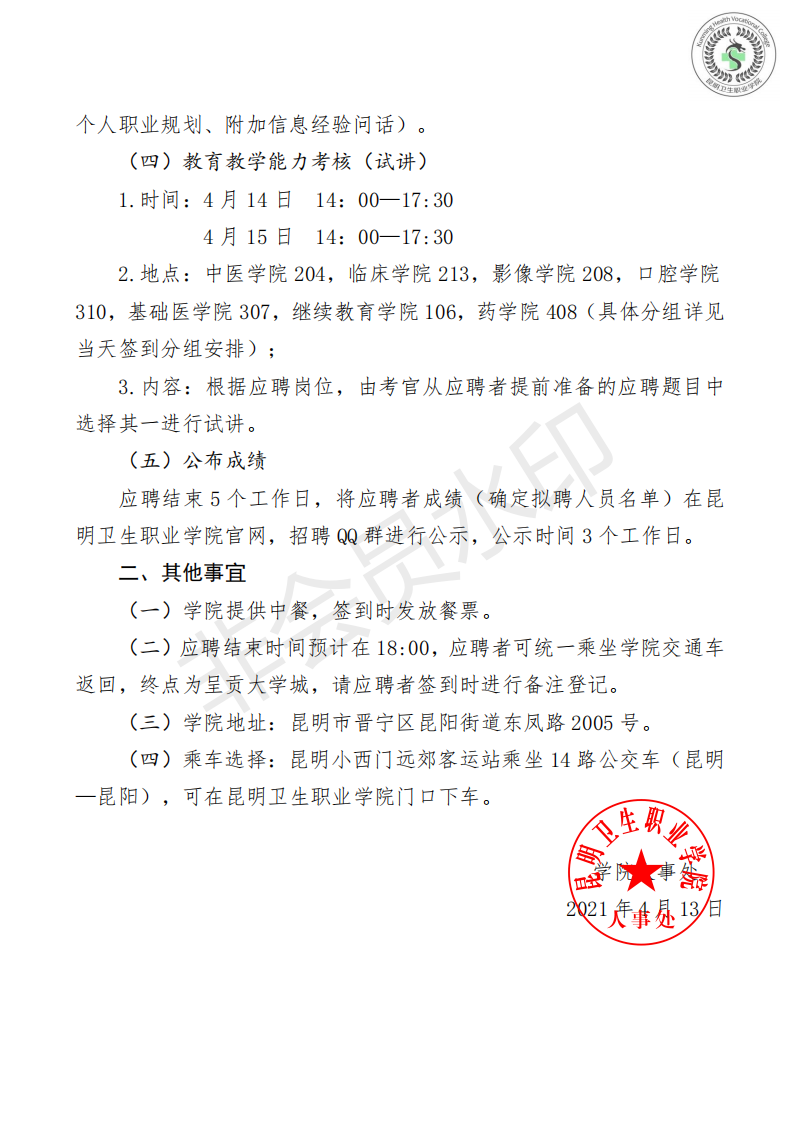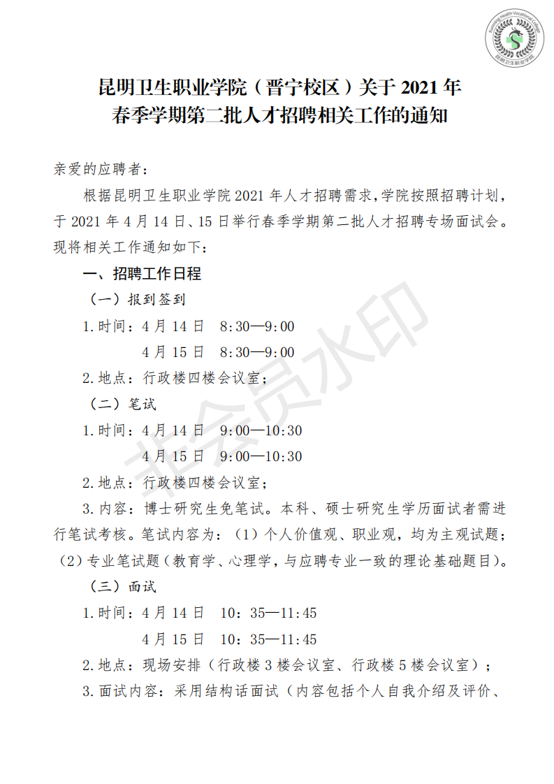 今年会官方网站(晋宁校区)关于2021年春季学期第二批人才招聘相关工作的通知