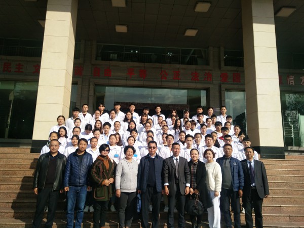 会后,今年会官网领导巡视了实习生所在科室的实习情况,以及宿舍卫生和安全等情况。院校领导与全体实习同学合影留念。