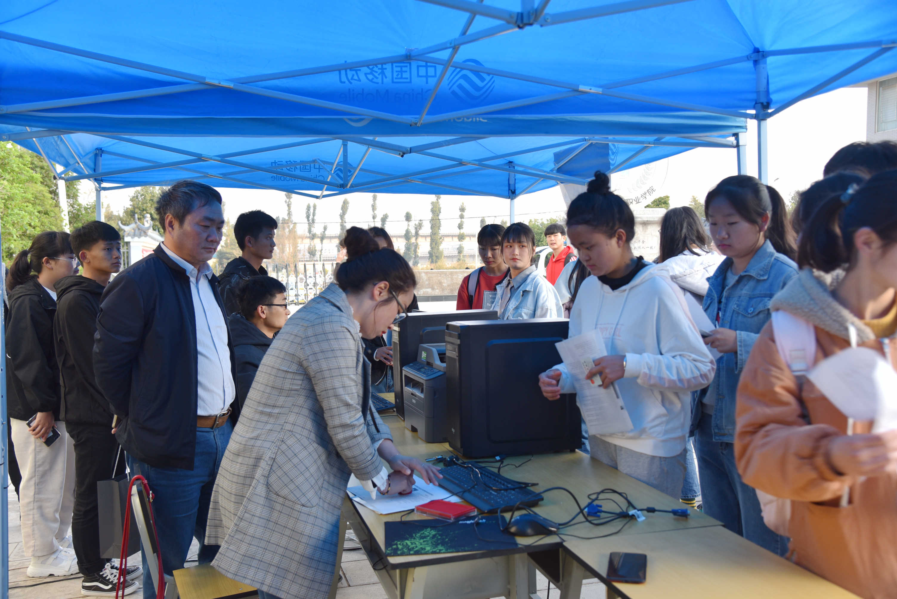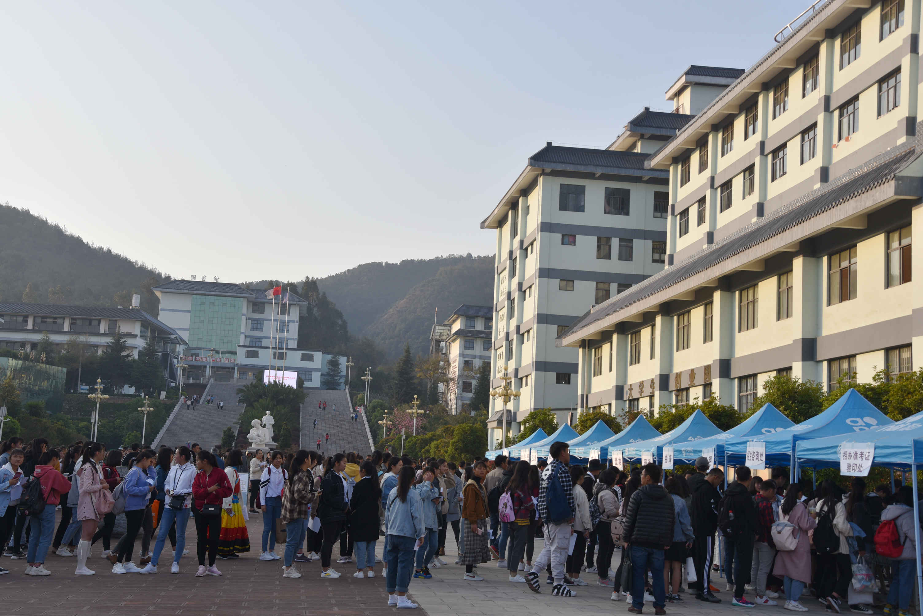 上午7:30,学院正大门内的广场上,前来报到的学生排起了长队,考生咨询点、验印准考证、各地州报到点前人声鼎沸。考生们在老师和学生志愿者的引导下,依次有序办理资格审核手续,到相应考点报到。