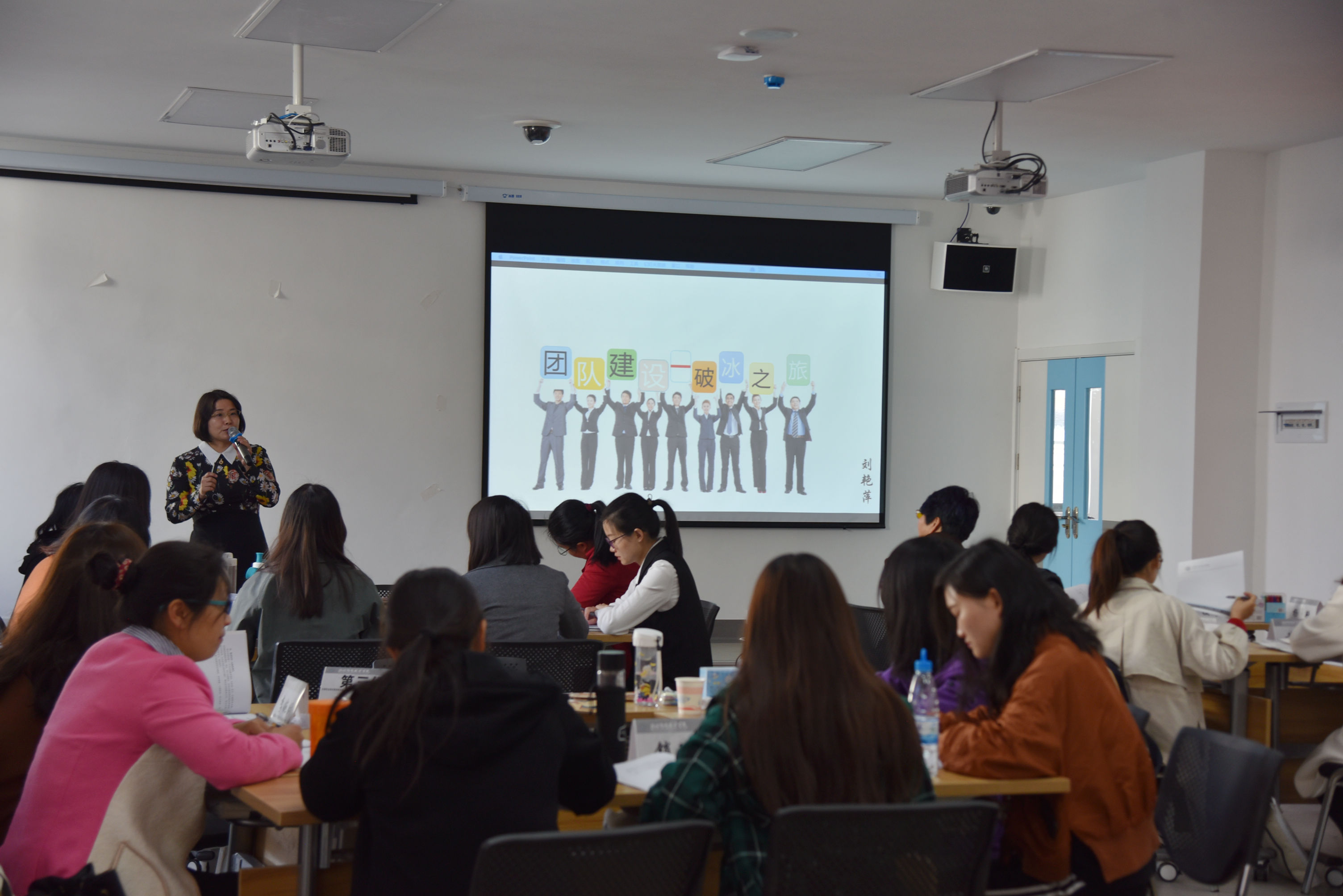 开班仪式结束后,全体参会人员进行了合影。9:00,来自清华大学继续教育学院的刘艳萍老师为大家授课,紧张而充实的培训生活将精彩启航!