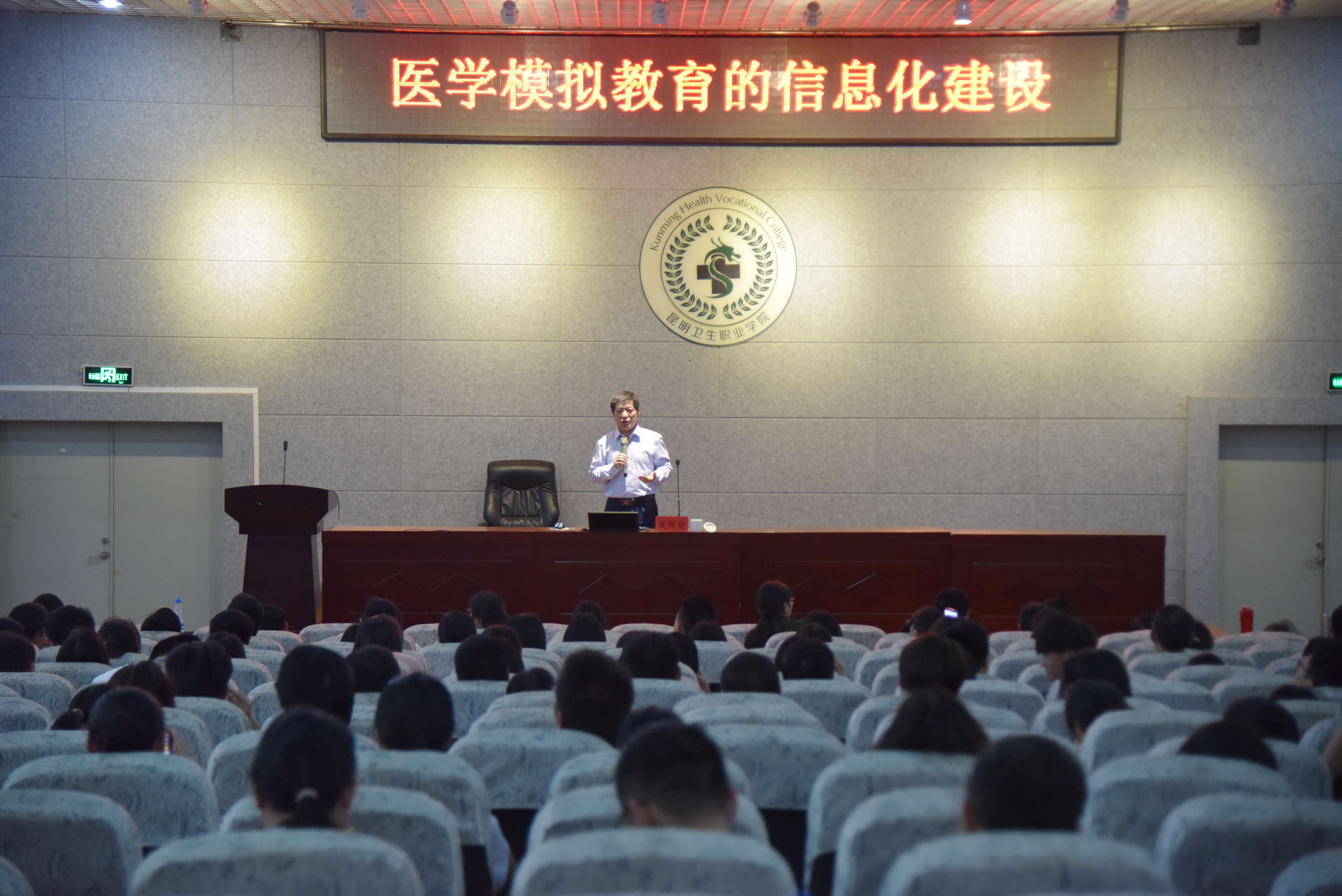 信息化建设是高校教育发展的趋势,是建设现代化高校的必由之路,时值今年会官网推进信息化建设之际,4月28日,学院专门邀请到了南京医科大学医学虚拟仿真实验教学中心主任高兴亚教授,在学术报告厅为全体教职工作题为《医学模拟教育的信息化建设》的报告,学院副院长龙雨霏、张尤松、学院昆明校区副院长陶晓燕出席,学院党委副书记张晓刚主持报告会。