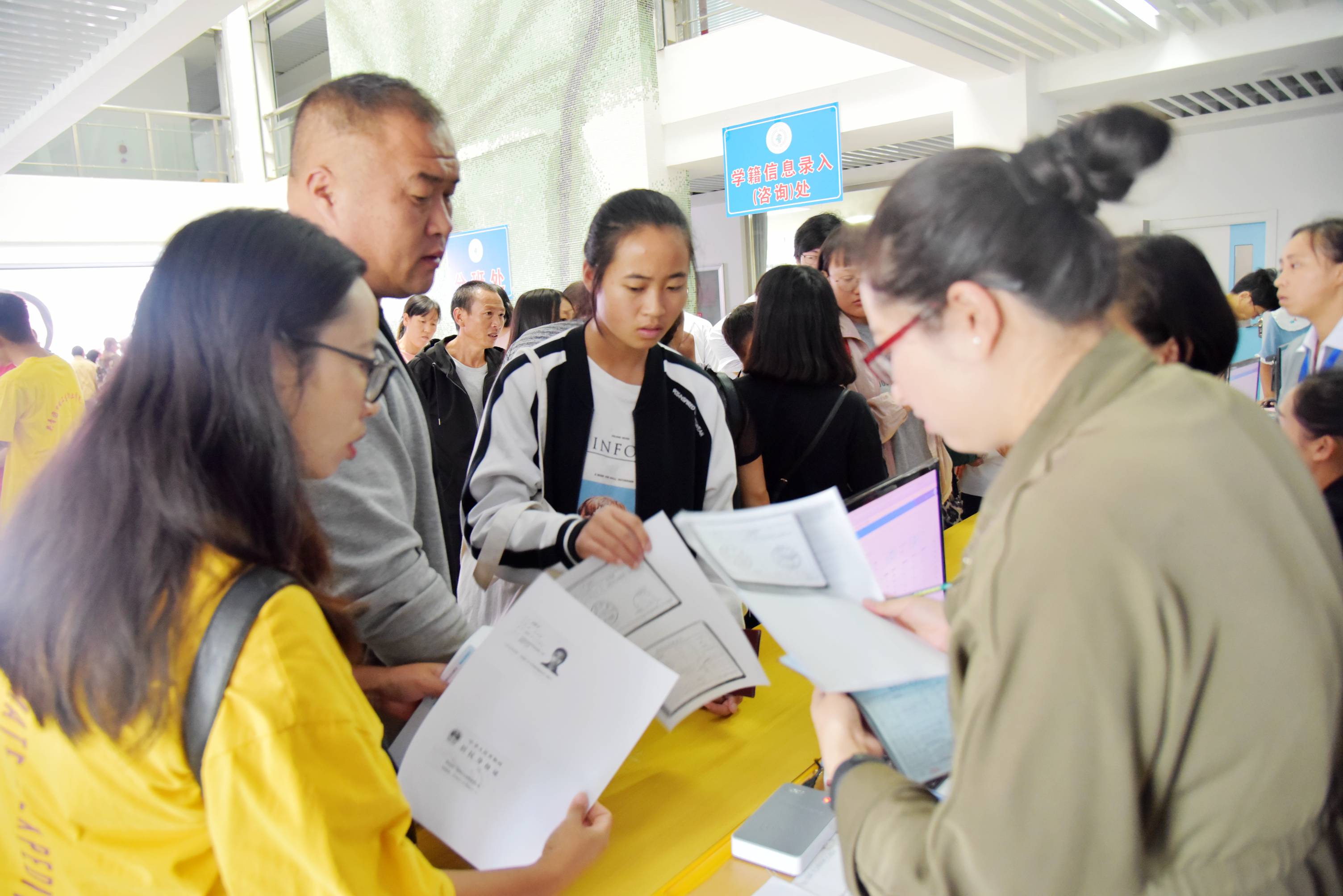 学院以人为本,始终以提供新生和家长满意的服务为工作宗旨,从校门一直到各二级学院,搭建了覆盖所有报到流程的服务网络,组织精干力量为新生办理入学资格审核、助贷服务、缴费办卡、分班分宿舍以及找班主任报到、宿舍入住等服务,并在报到现场多处设置了饮水区和休息区,方便新生和家长歇息。大学生志愿者分布在校园各个角落,忙碌穿梭,热情周到地为新生及家长做好指引帮助,点点滴滴彰显人文关怀。