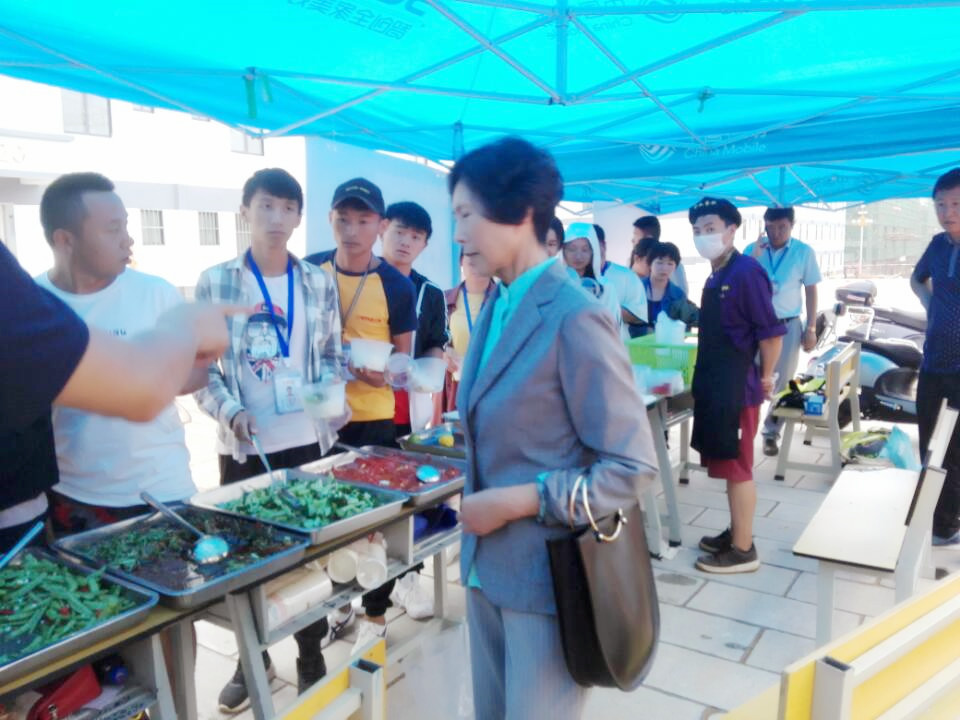 周平副院长等学院领导向朱副理事长汇报了学院迎新工作进展,并介绍了各迎新站点设置、人员到位和组织保障情况。朱副理事长还视察了迎新接待点就餐区,仔细查看了就餐区的菜品种类,叮嘱服务人员要保证安全卫生,让前来就餐的师生吃得放心,吃得舒心。