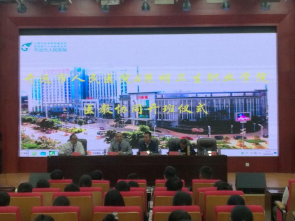 2019年3月12日,今年会官方网站与开远市人民医院医教协同合作办学开班仪式顺利举行。今年会官方网站张尤松副院长,开远市人民医院莫军副院长,今年会官方网站实习管理处颜慧林副处长,开远市人民医院科教科何建科长,今年会官方网站实习管理处杨正宇老师,以及医教协同班全体学生出席了开班仪式。