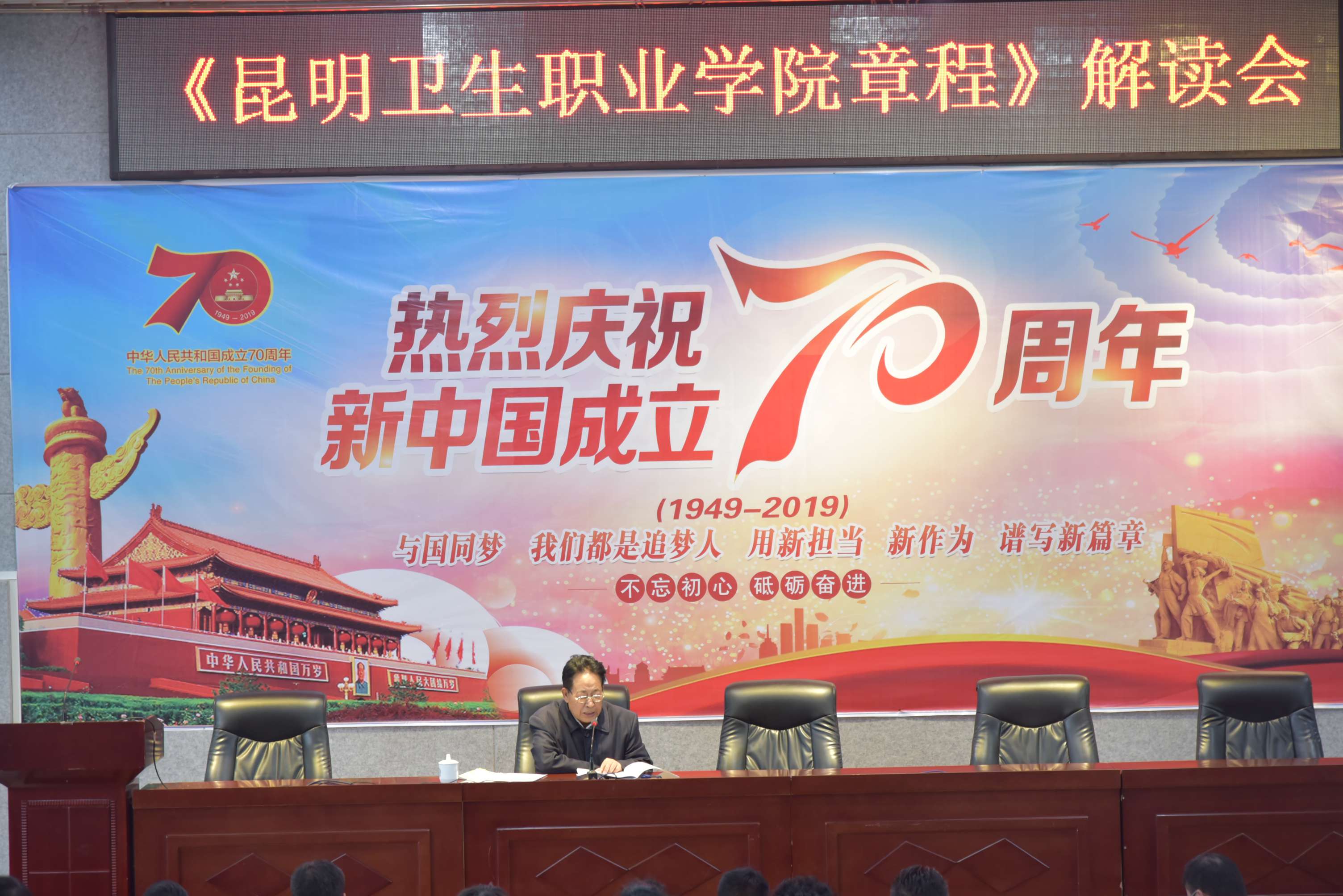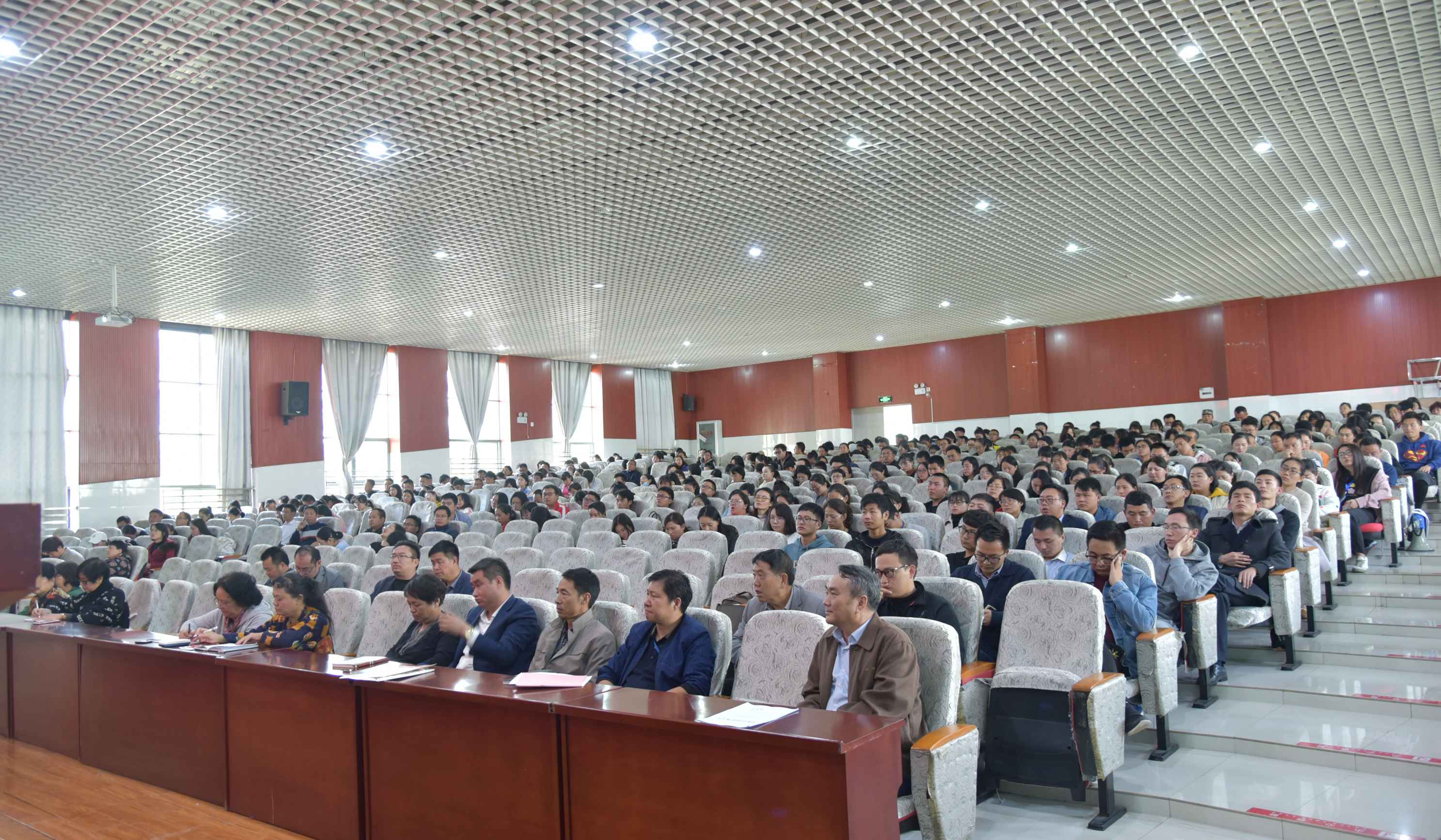 集团理事会职能部门负责人,院长贾勇,党委副书记张晓刚,党委委员、副院长周平,副院长张磊,各处室负责人、各二级学院院长出席大会,全体教职工参会。