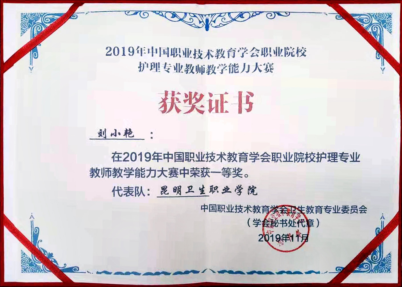 护理学院教师周璇、刘小艳代表今年会官方网站参赛。参赛教师精心准备、沉着应战,经过为期3天的紧张比赛,斩获佳绩,获得团体一等奖,周璇老师、刘小艳老师均荣获了个人一等奖。其中周璇老师在说课程环节中以最高分97.33分打破了前两届说课程最好的成绩记录,以全国第一名的优异成绩得到专家评委的一致好评。