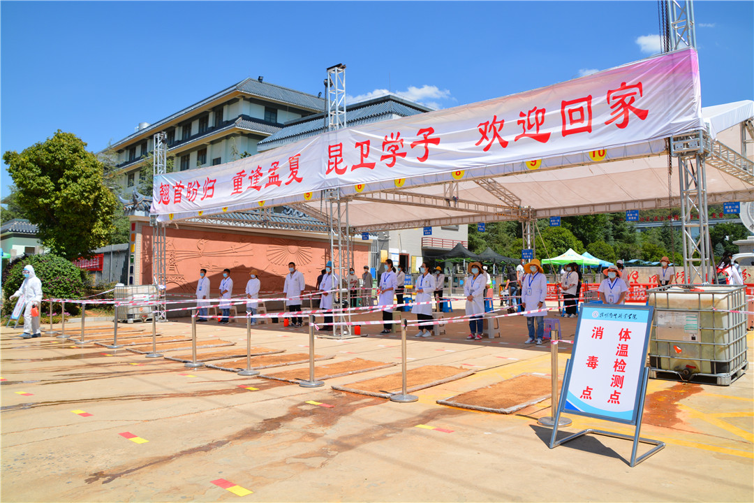 紧张有序的返校背后,离不开全院上下的努力付出和辛勤劳动,也离不开晋宁区委区政府的大力支持。区交通、公安、特警等多部门的工作人员与学院教职工共同执守,形成联防联控强大合力,确保了学生安全顺利返校。